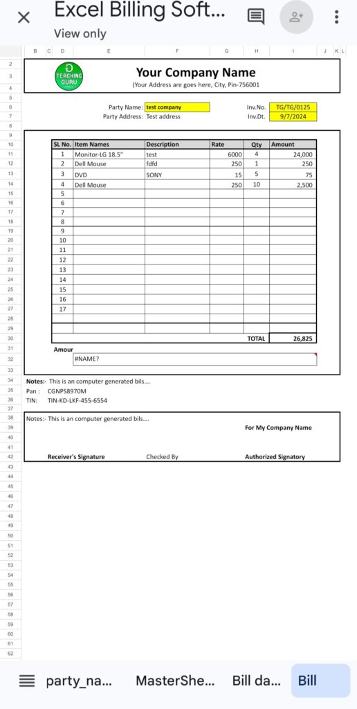 Every time you click “Print,” customer data is saved to a dedicated “Customer History” sheet. This feature logs details like party names, purchased items, bill numbers, and dates—so you’ll always have a reliable transaction history. - Budget-Friendly Solution